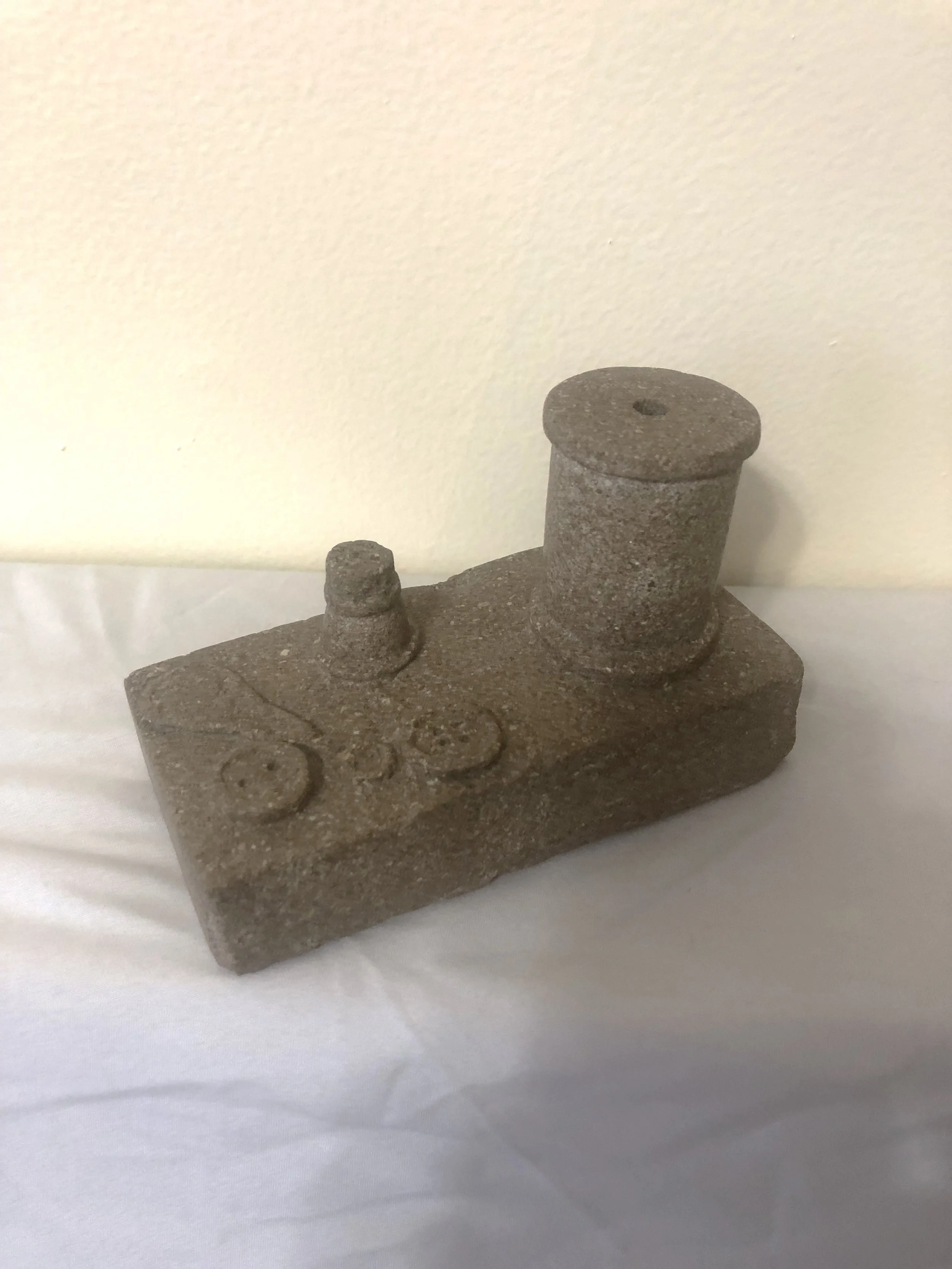 Having been a little annoyed with the color variations in the Dandelions in the Mouse, I fell back on plain old boringly predictable Indiana limestone. Sure, it’s gray and blah, but it holds details well without “flaking off” and frustrating the crap out of you as you try and carve the details. So yeah, it’s what you think it is, a spool of thread, a thimble, some buttons, and that thing that helps you thread a needle. I don’t know what that is called exactly, but if you know, you know. It turned out okay, The spool is straight, the thimble is a bit larger than actual but I wanted some detail, buttons worked out, and that thing for threading a needle even worked out, although it is thicker than the real thing and it was tough to represent the little wire at the end. Unfortunately I had not yet added my little tag to the bottom with my e-mail so whomever found it couldn’t let me know. I guess it will forever be a mystery.