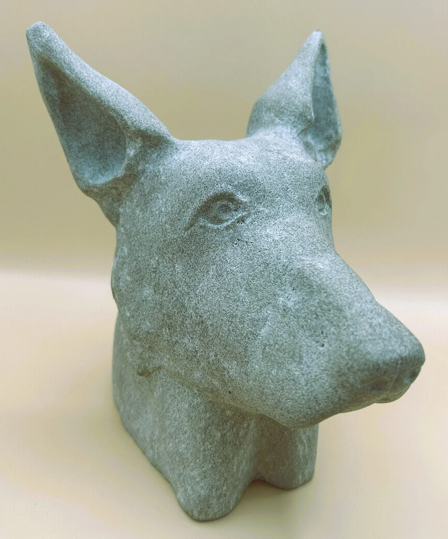 This started off as a clay portrait of my wife’s guide dog. I took a tutorial on doing clay busts, but I didn’t care to do a person so I did a dog and I think it turned out pretty okay. So after I fired and glazed it, I thought I would use it as my model to make a stone bust of her as well and I am not gonna lie, it was a chore. Lots of measuring and marking and measuring and marking with my homemade thingy for measuring and marking but in the end it paid off. Probably the most difficult piece I have made to date and that includes the diver’s helmet (see below) because at least that was geometrically shaped! Anyway, I will give it 4.5 out of 5, because there are some places where I could have done a little better…